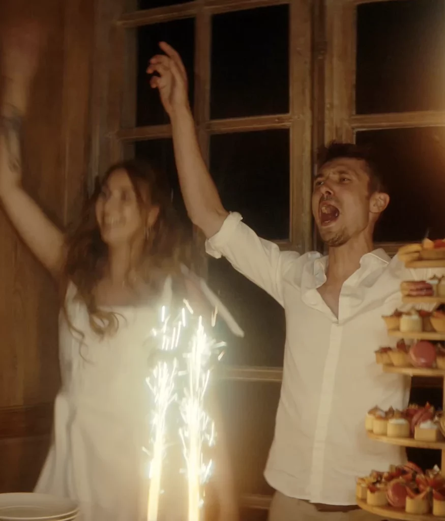 Par rapport à la photographie, vous bénéficier d’un élément supplémentaire lorsqu’on parle d’un film de mariage : l’utilisation du son tel que les discours ou la musique de fond pour renforcer l’émotion. Je capture à la fois la spontanéité des échanges, des regards, des moments de joie, mais aussi l’ambiance du lieu avec les détails de la décoration et des invités.